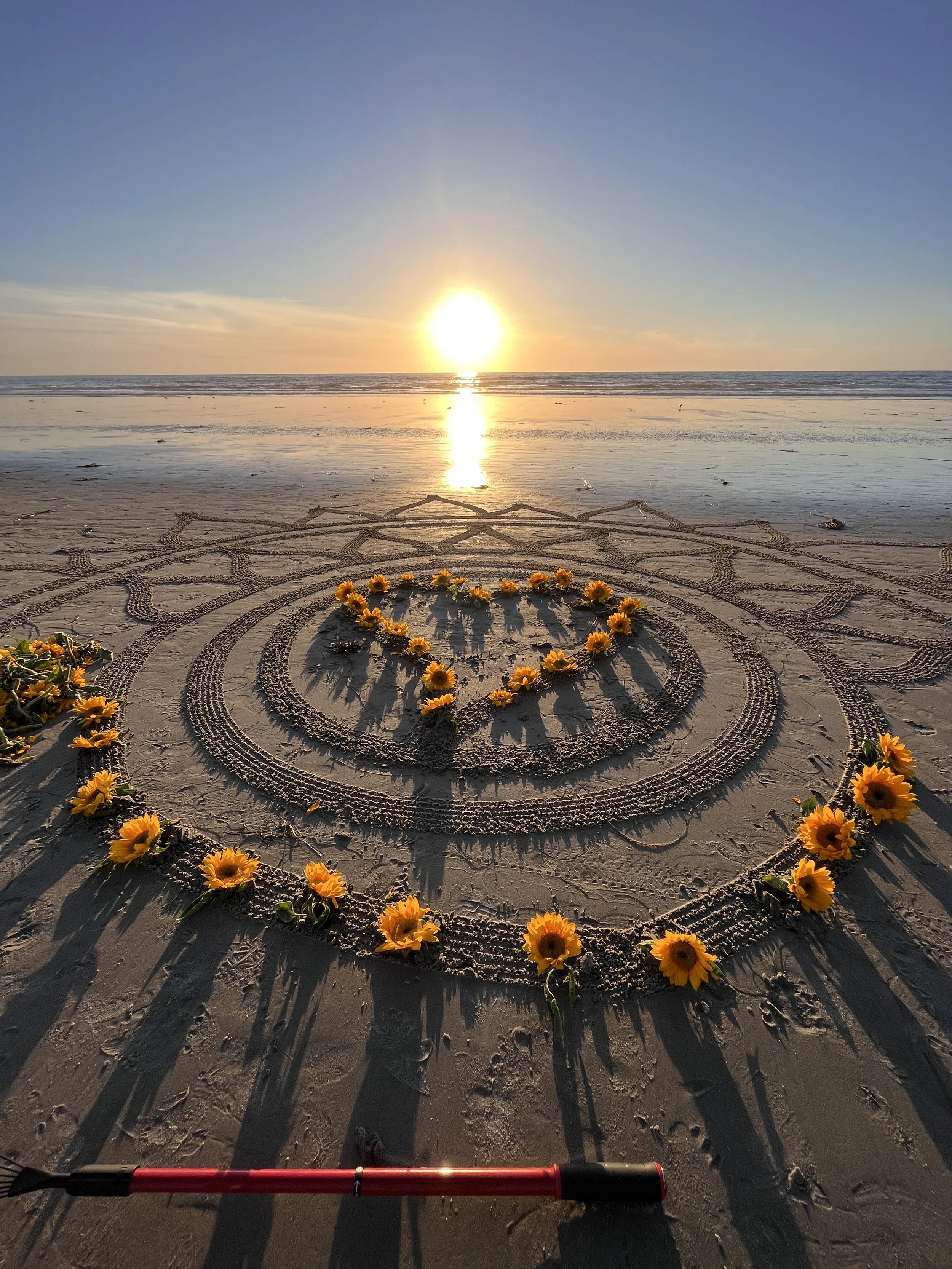 Using large rakes at low tide, we'll create a collective meditation in sand, a living artwork that represents what we're releasing and what we're calling in. You don't need to be an artist. You need to be present. Guided by Sharon BelKnap, each woman will add her intention to the sand, a shared landscape emerges. Then, we witness the ocean reclaim it all, a powerful reminder that letting go creates space for what's next. This is impermanence made beautiful.